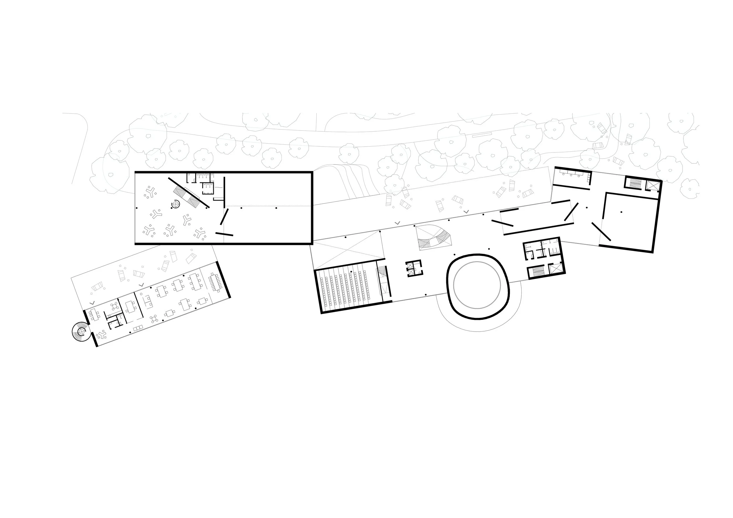 Ako / Návšteva objektu sa stáva pohybom živým mestom, kde sa striedajú otvorené a intímne priestory, podnecujúce interakciu aj sústredenie.